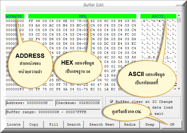 Buffer เพื่อดูโปรแกรมที่ดูดมาจะแสดงเป็น