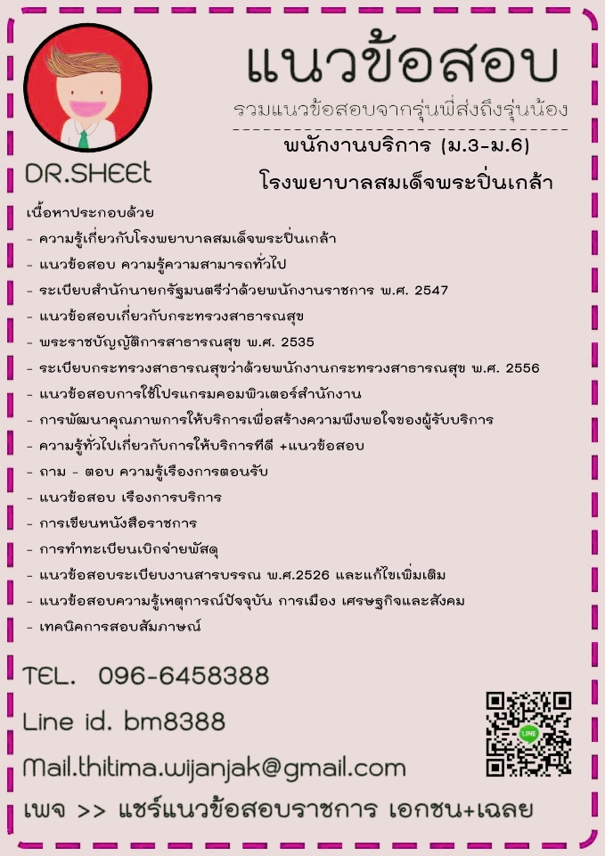 - โหลดแนวข้อสอบ พนักงานบริการ (ม.3-ม.6) โรงพยาบาลสมเด็จพระปิ่นเกล้า / ทุกตำแหน่ง