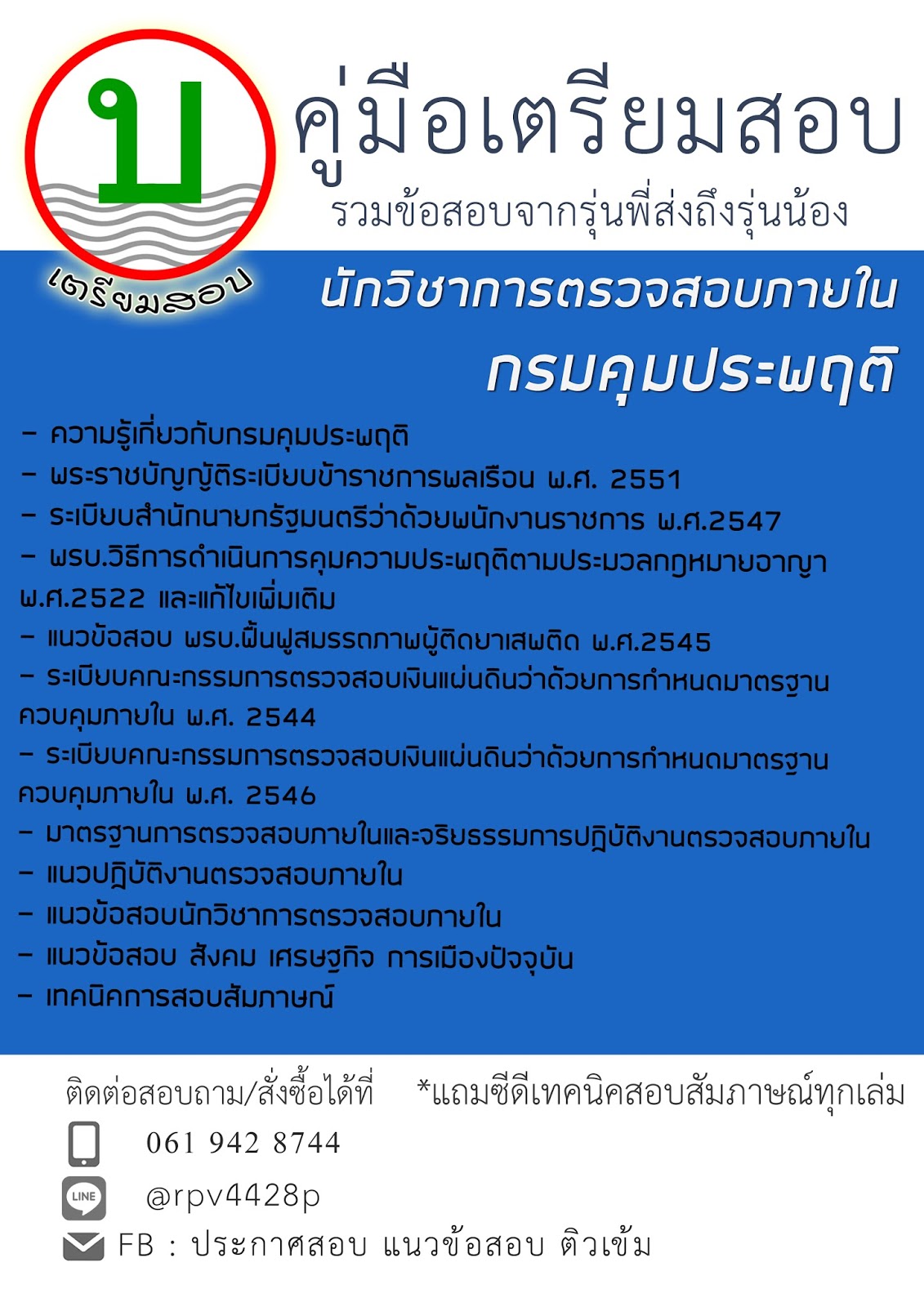 - โหลดแนวข้อสอบ นักวิชาการตรวจสอบภายใน กรมคุมประพฤติ