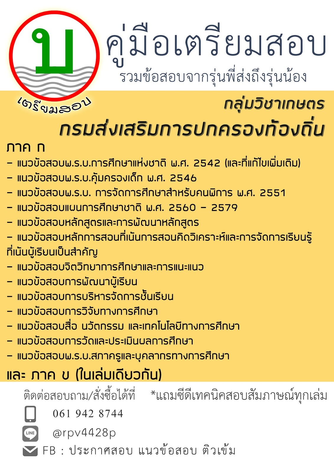 - โหลดแนวข้อสอบ ครูผู้ช่วย กลุ่มวิชาเกษตร กรมส่งเสริมการปกครองท้องถิ่น (อปท.)