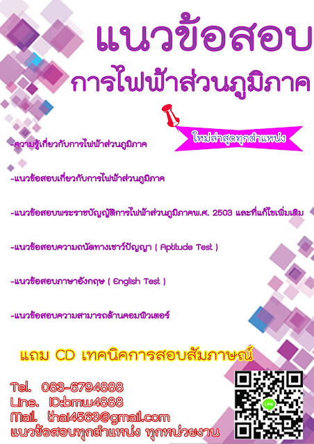 แนวข้อสอบ การไฟฟ้าส่วนภูมิภาค ทุกตำแหน่ง