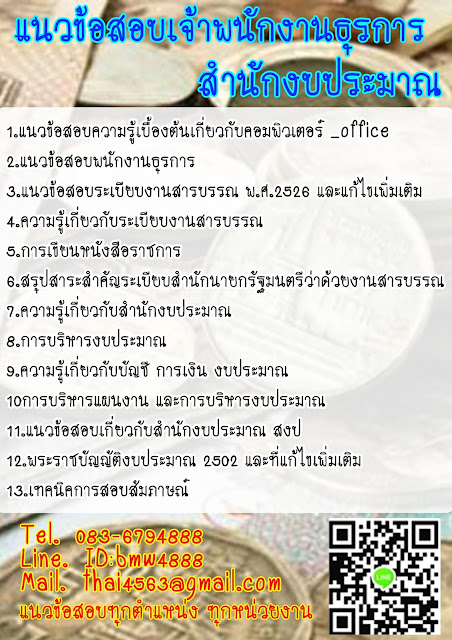 Tags : แนวข้อสอบเจ้าพนักงานธุรการ สำนักงบประมาณ,แนวข้อสอบนักวิชาการพัสดุ สำนักงบประมาณ,แนวข้อสอบเจ้าพนักงานโสตทัศนศึกษา สำนักงบประมาณ