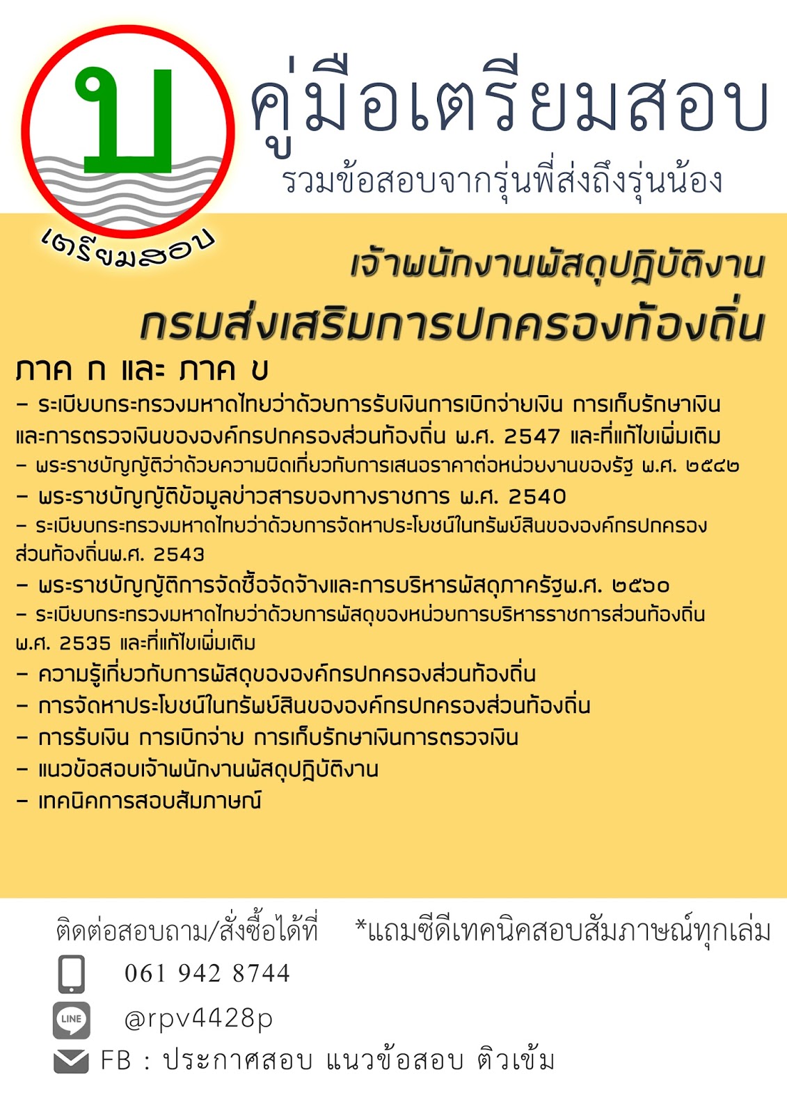 - โหลดแนวข้อสอบ เจ้าพนักงานพัสดุปฏิบัติงาน กรมส่งเสริมการปกครองท้องถิ่น (อปท.)