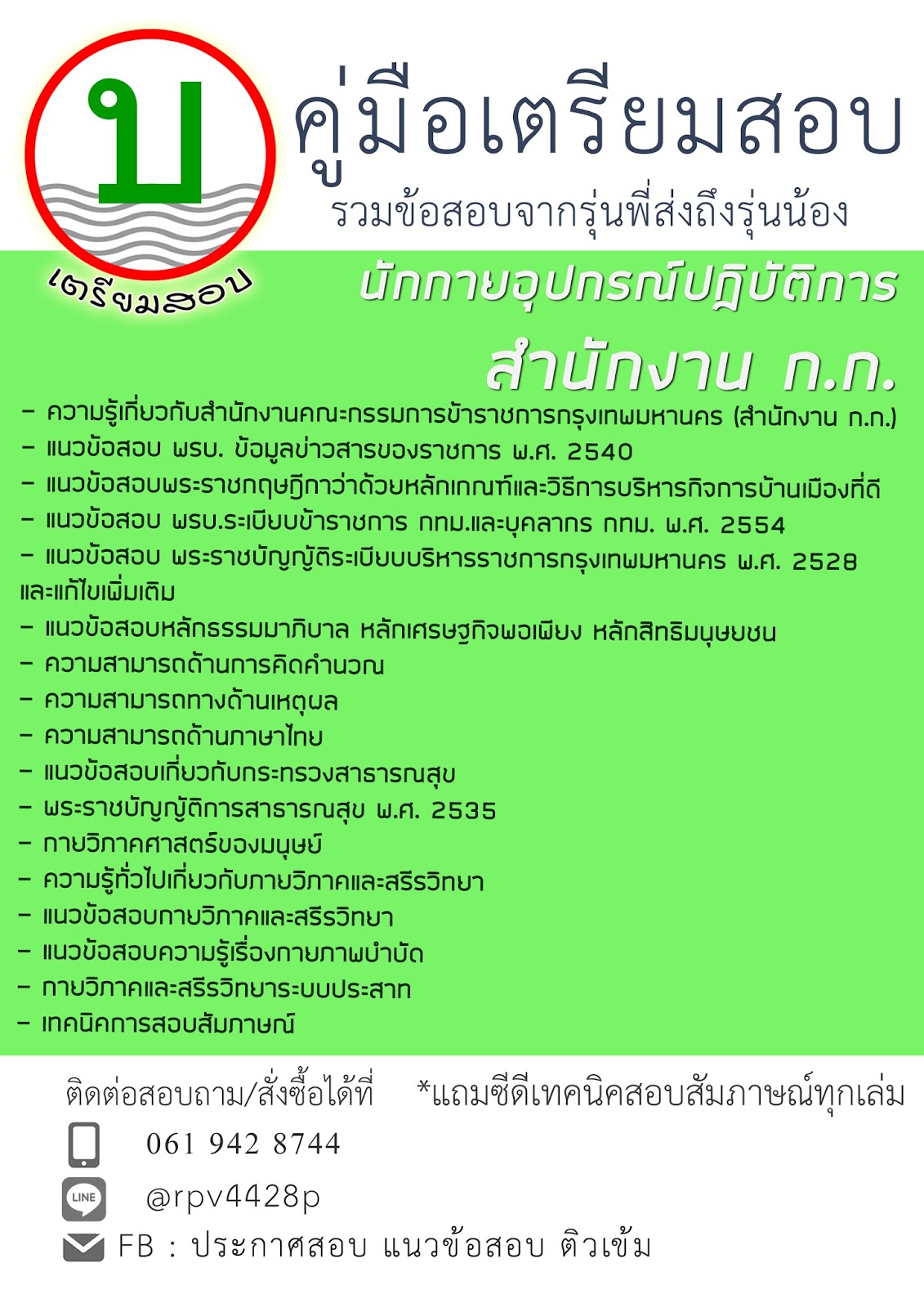 #แนวข้อสอบพยาบาลวิชาชีพปฏิบัติการ #แนวข้อสอบแพทย์แผนไทยปฏิบัติการ #แนวข้อสอบนักเวชศาสตร์สื่อความหมายปฏิบัติการ #แนวข้อสอบนักกายภาพบำบัดปฏิบัติการ #แนวข้อสอบนักกายอุปกรณ์ปฏิบัติการ #แนวข้อสอบนักกิจกรรมบำบัดปฏิบัติการ #แนวข้อสอบนักรังสีการแพทย์ปฏิบัติการ #แนวข้อสอบนักเทคนิคการแพทย์ปฏิบัติการ #แนวข้อสอบนักวิทยาศาสตร์การแพทย์ปฏิบัติการ
