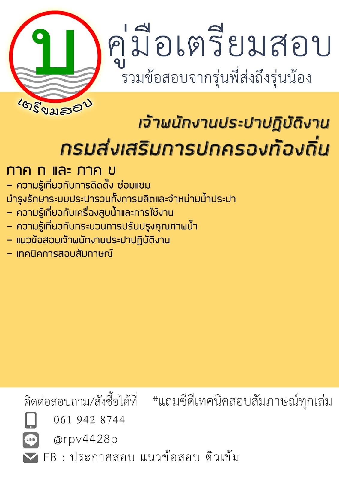 - โหลดแนวข้อสอบ เจ้าพนักงานประปาปฏิบัติงาน กรมส่งเสริมการปกครองท้องถิ่น (อปท.)