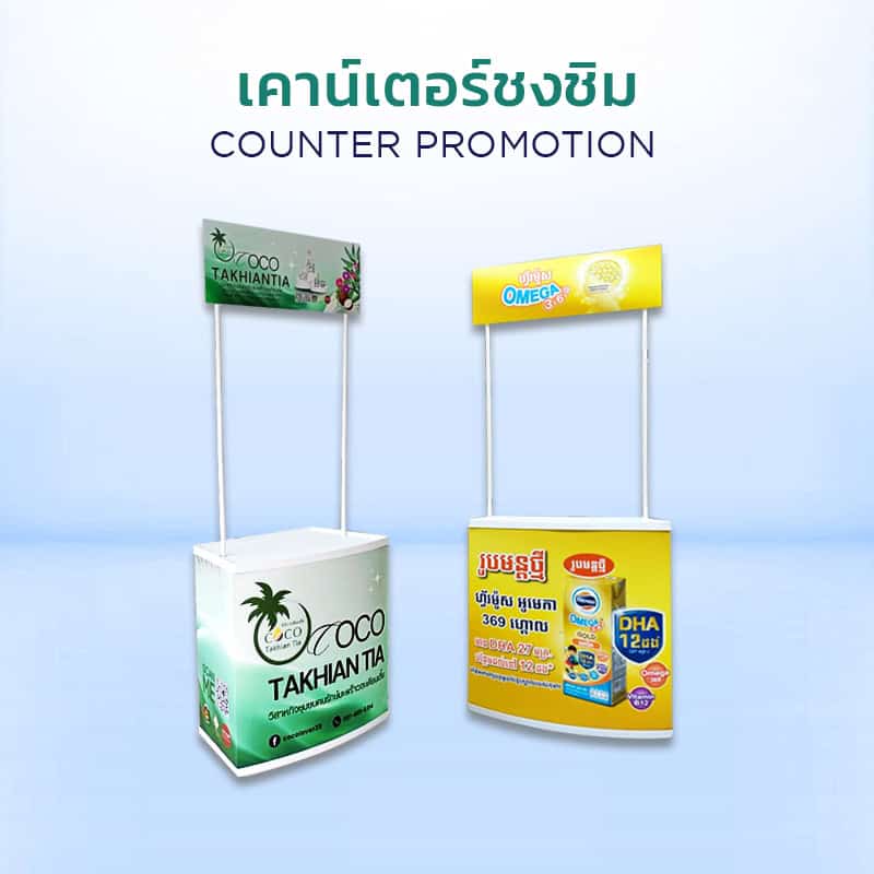 Pop Up counter,Promotion counter แบบผ้านี้จะเป็น Green Product ลดการใช้วัสดุที่ย่อยสลายได้ยากอย่างเช่นแผ่นพลาสติก,แผ่นริจิด,PVC Sticker,PP Sticker,ไวนิล