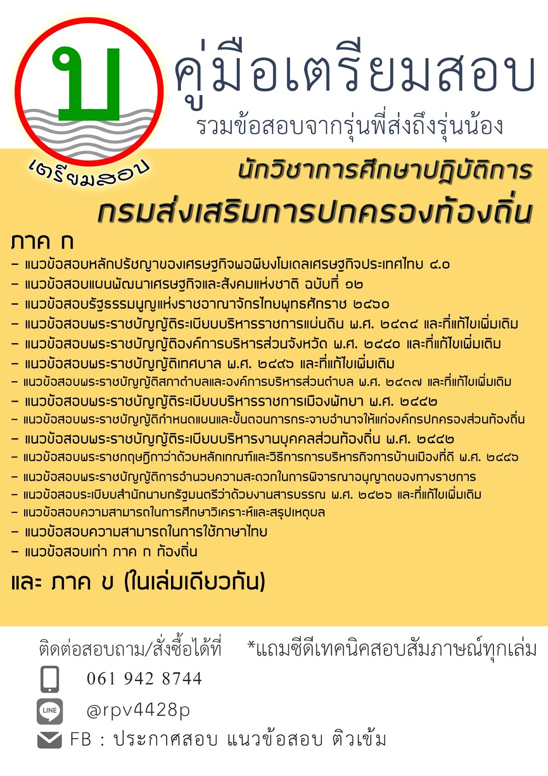 - โหลดแนวข้อสอบ นักวิชาการศึกษาปฏิบัติการ กรมส่งเสริมการปกครองท้องถิ่น (อปท.)