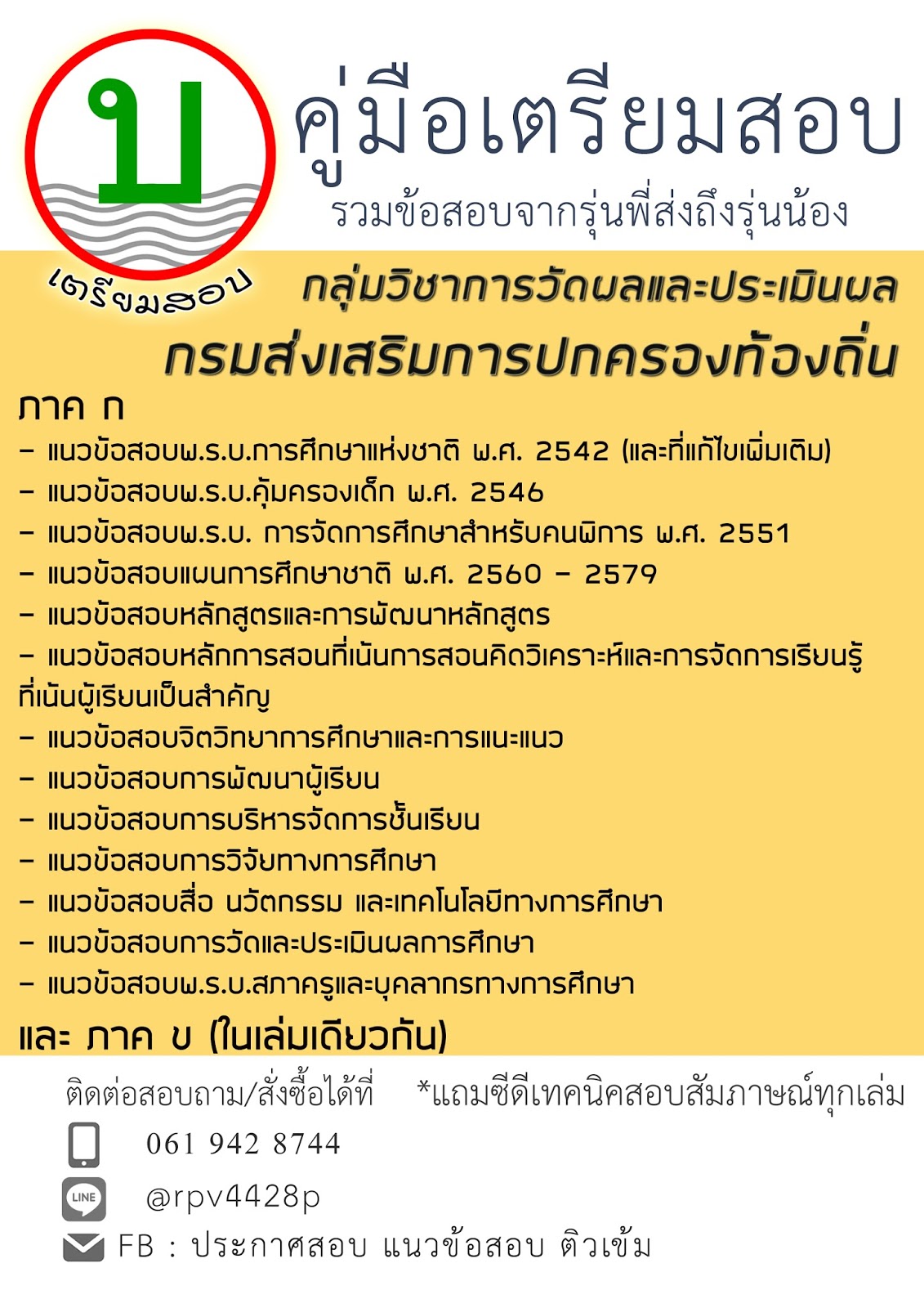 - โหลดแนวข้อสอบ ครูผู้ช่วย กลุ่มวิชาการวัดผลและประเมินผล กรมส่งเสริมการปกครองท้องถ