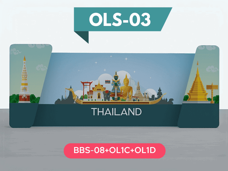 - ชุดนิทรรศการแบบผ้า แบคดรอปผ้าโค้งสูง 3 เมตรยาว 6 เมตร ใหญ่มหึมา อลังการงานสร้าง