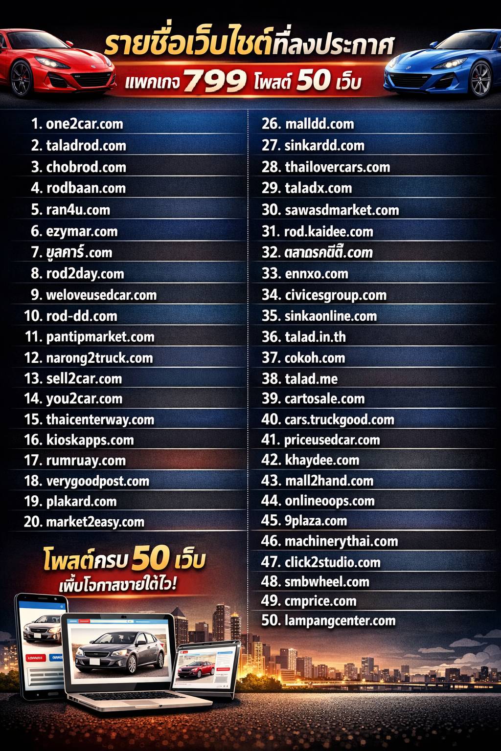 - รับจ้างโพสต์ รถบ้าน รถเจ้าของขายเอง โพสต์ลง 30 หรือ 50 เว็บไซต์รถยนต์ชั้นนำโดยเฉพาะ